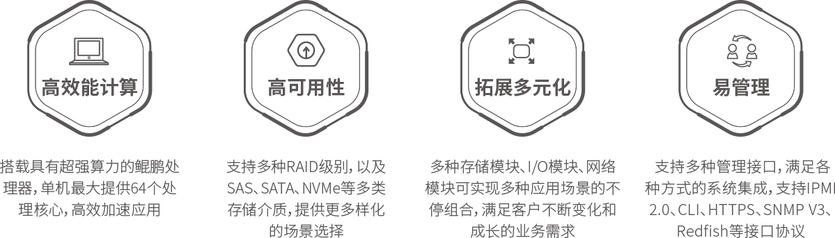 连连国际 KunTai R721高密服务器是神州数码基于鲲鹏基础硬件推出的新一代高密度计算设备。其具备高效能计算、安全可靠与开放生态优势。